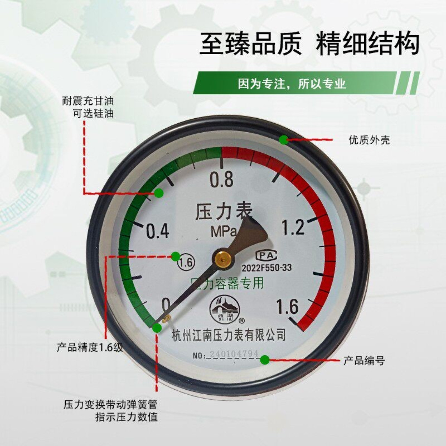 杭州江南压力表带检测空压机计量局报告卧式 Y100 压力表Y100Z立式