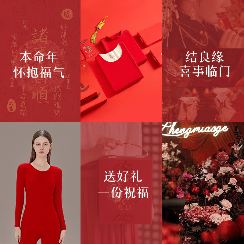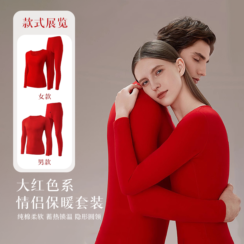 盒装 纯棉内衣裤 suit 新年大红色本命年情侣女保暖套装 保暖内衣男款
