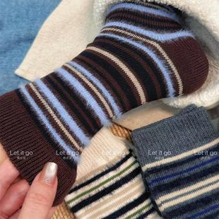 冬天袜子中筒袜女士秋冬季 长筒袜毛圈袜加厚加绒保暖厚月子袜黑色
