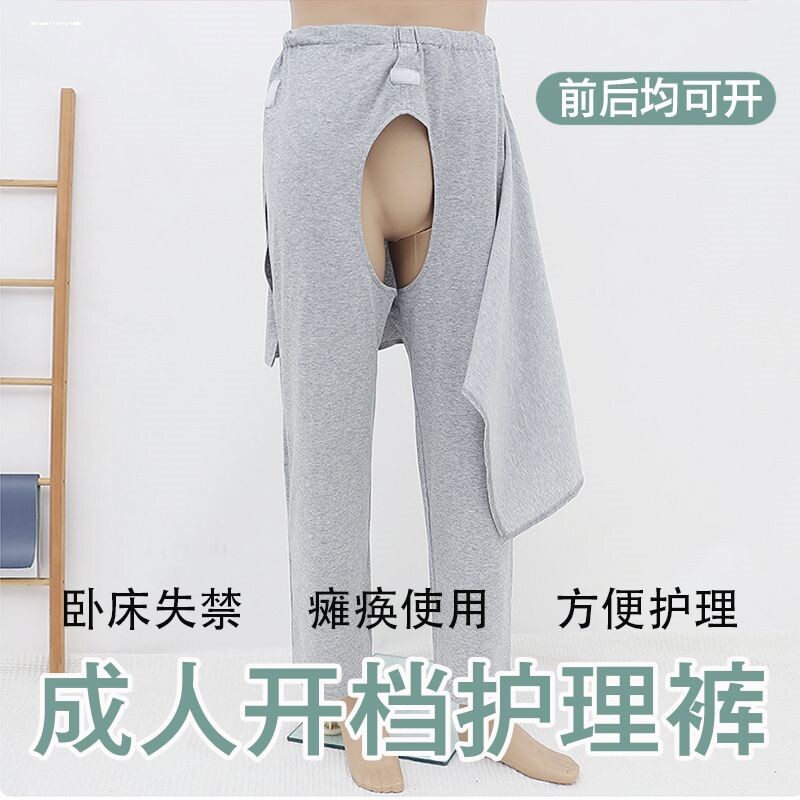 挡布尿袋 失禁护理裤 春秋瘫痪老人专用裤 子卧床瘫痪病人衣服开裆裤