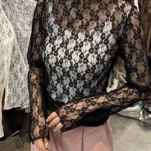 Exclusive 上衣 type小众搭配玫瑰花朵柔软蕾丝波浪边圆领打底长袖
