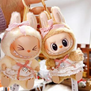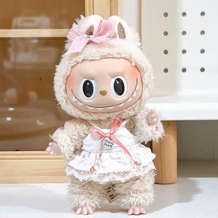 拉布布一二代17cm坐坐派对搪胶马卡龙公仔可穿裙子发带套装 着替