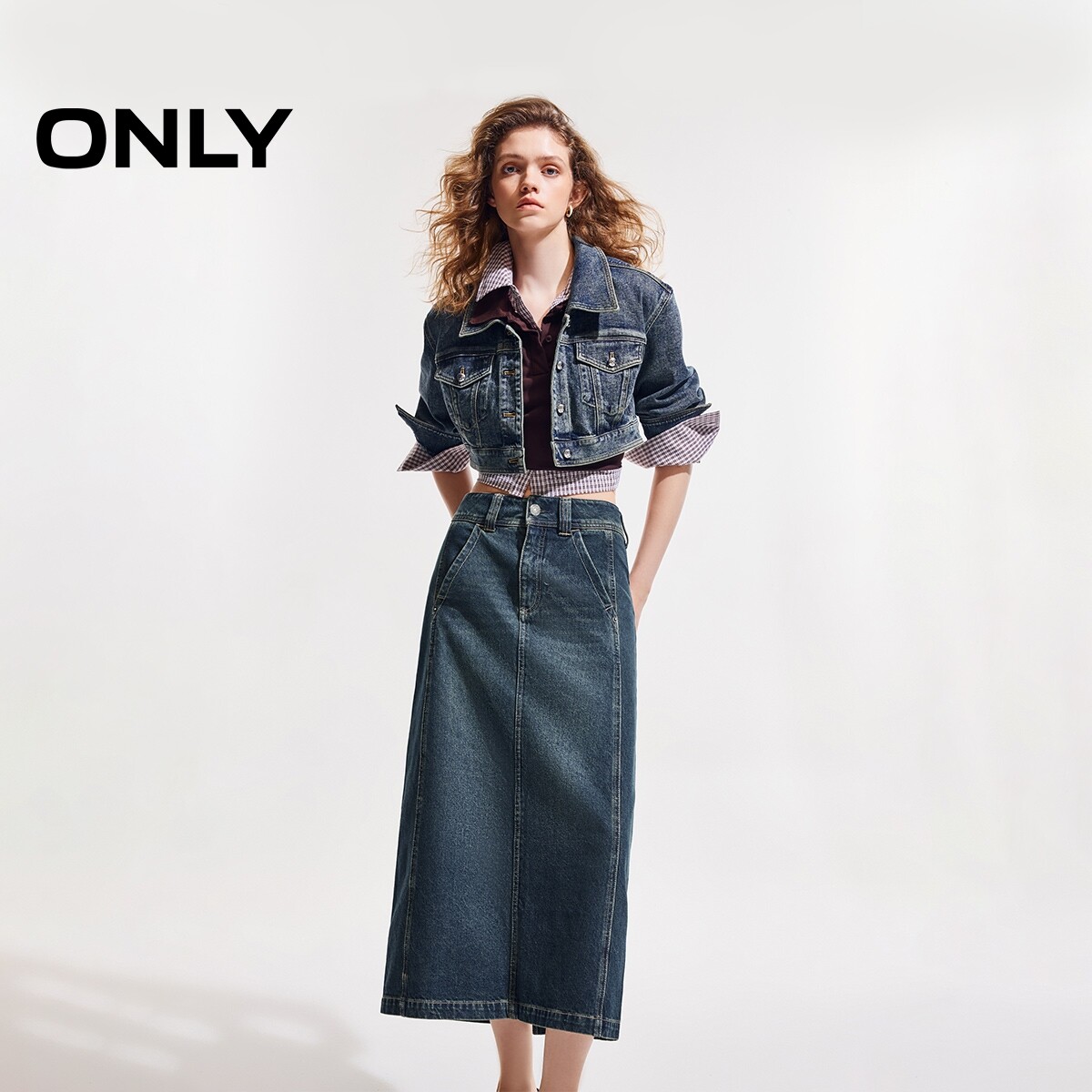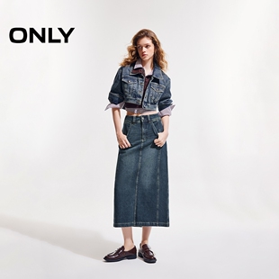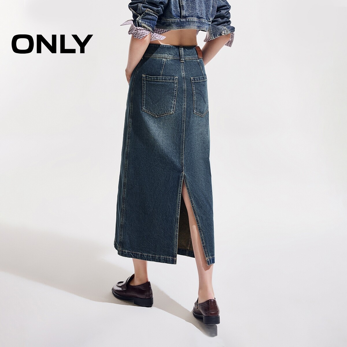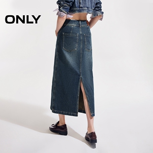 绫致ONLY春夏新款 复古做旧纯棉直筒牛仔半身裙女 时尚