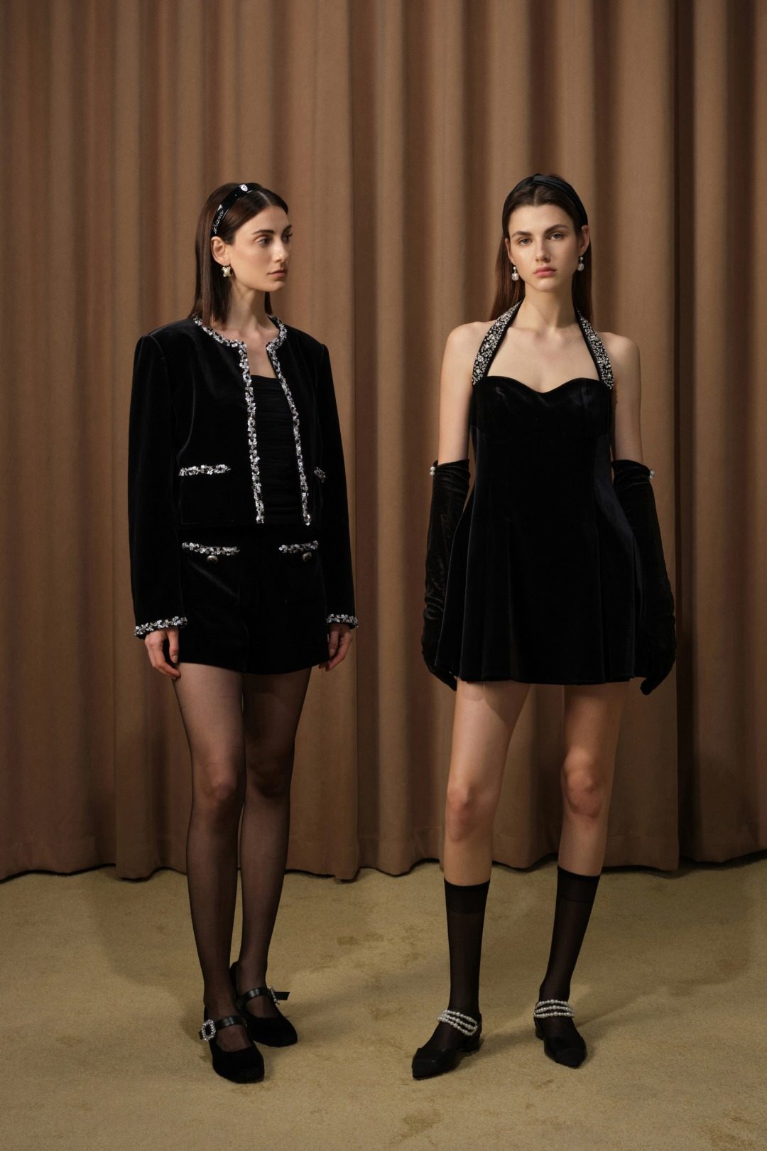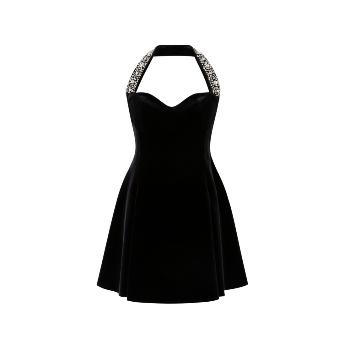 优雅轻礼服宴会连衣裙年会女 24秋冬挂脖丝绒裙时尚 DIANA VEVINA