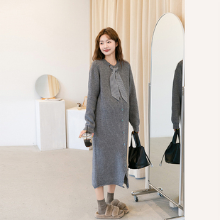 学院风配大衣打底裙子过膝针织裙 秋冬新款 孕妇装 连衣裙外穿韩版