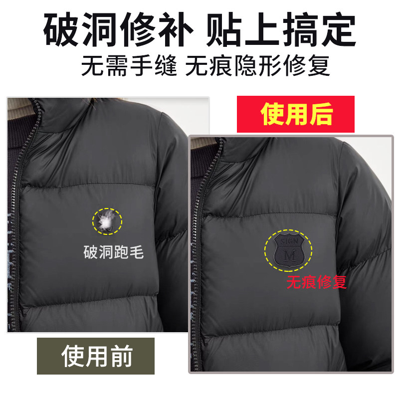 羽绒服补丁贴自粘无痕高端修补免缝衣服破洞专用隐形修复黑色布贴