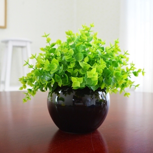仿真绿植小盆栽尤加利盆景家居摆设摆件书桌迷你装 饰假花盆栽米兰