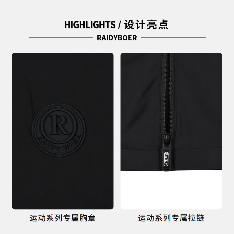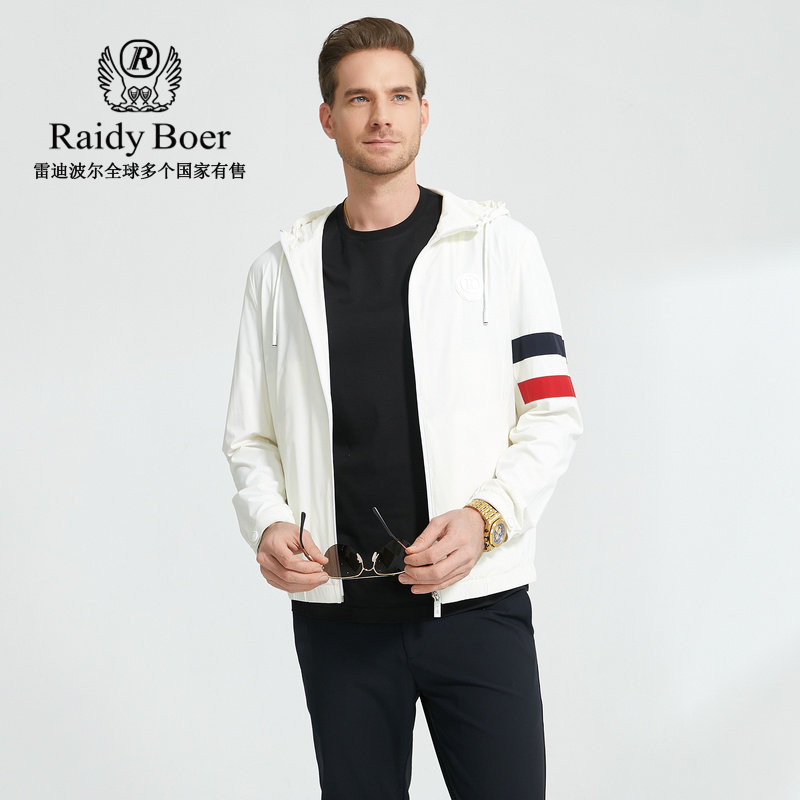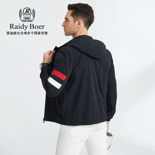 Raidy Boer雷迪波尔男春新条纹胸章品牌字母连帽混纺夹克外套3318