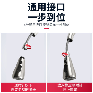 厨房抽拉式 水龙头替换喷头专用配件小花洒防溅出水嘴洗手加长接口