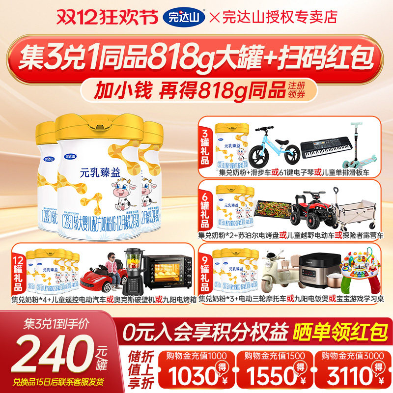 乳臻益2段较大婴儿配方奶粉818g 官方旗舰完达山元 3罐 大礼 3送1
