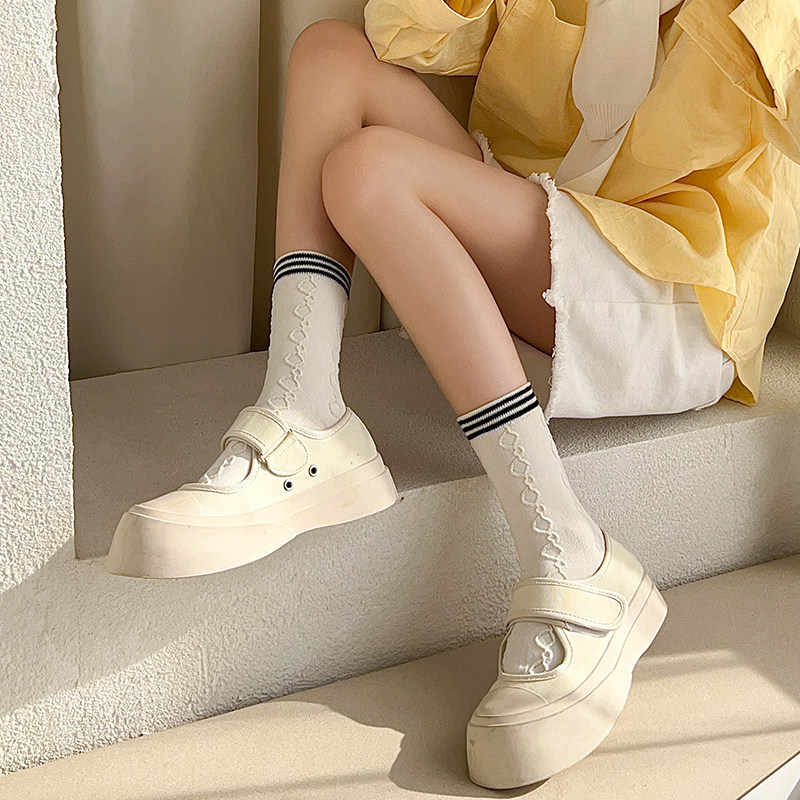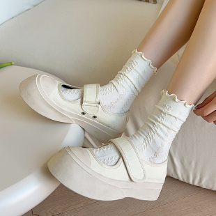 白色jk袜子女春夏季 棉袜透气日系可爱洛丽塔少女花边中筒袜 薄款