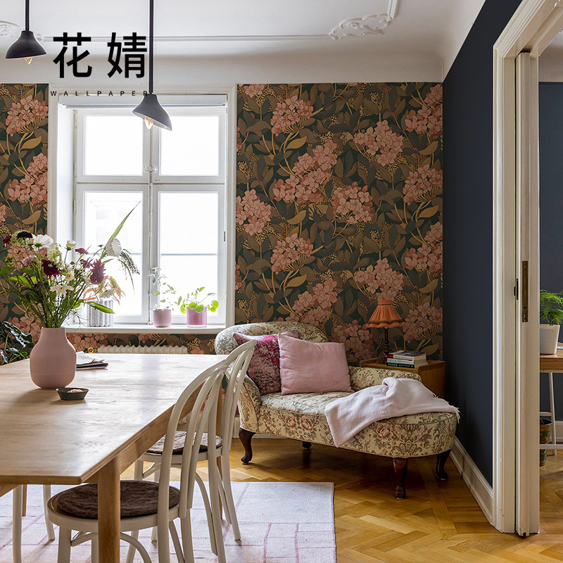 美式 轻奢墙布花卉复古客厅沙发墙纸壁布无缝餐厅卧室背景墙壁纸