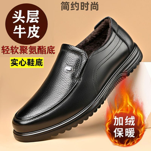 舒适爸爸棉鞋 骆驼男鞋 商务休闲真皮软底中年加绒保暖皮鞋 新款 冬季