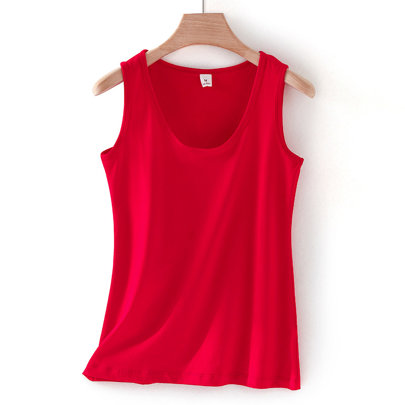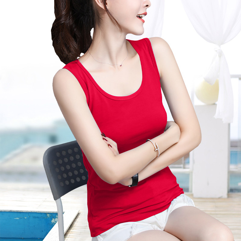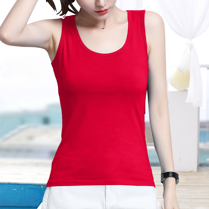 低领宽肩带打底衫 大红色棉质小吊带本命年无袖 背心女内搭外穿修身