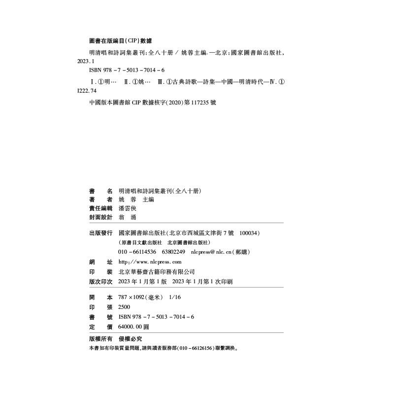 明清唱和诗词集丛刊 社 全八十册 国家图书馆出版 9787501370146 姚蓉 现货正版