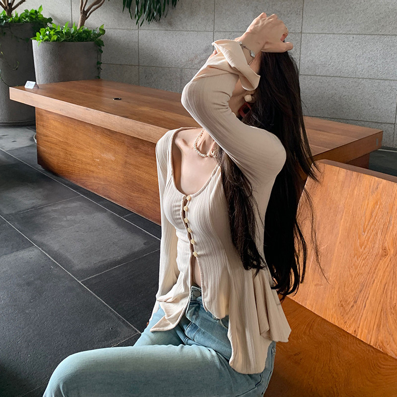 不规则设计纯欲显瘦喇叭袖 纯纯欲动 开衫 清仓商品不退不换