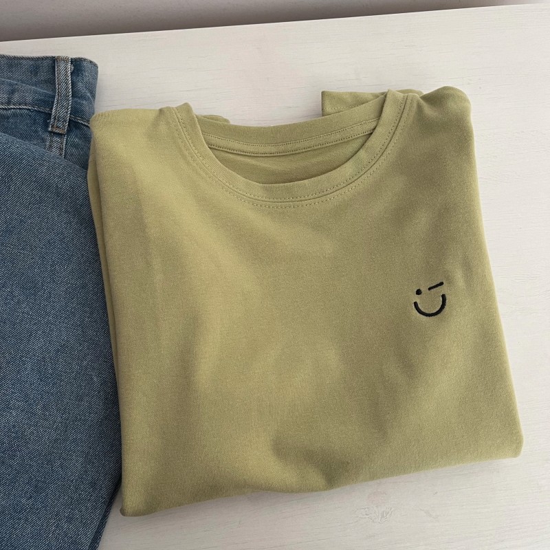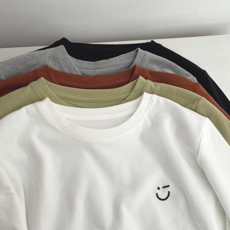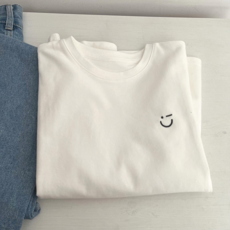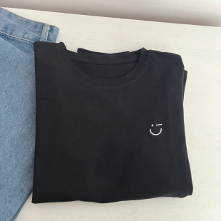 磨毛加厚圆领长袖 春新款 T恤上衣女 笑脸简约小刺绣打底衫 smile