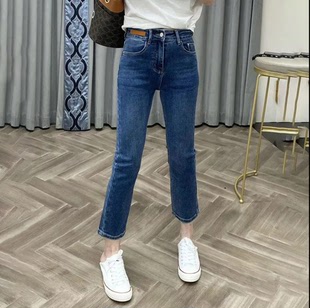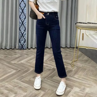 烟管裤 丹宁蓝直筒弹力牛仔裤 九分小个子高腰修身 新款 潮 女2026春季