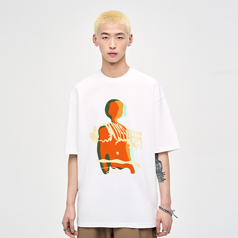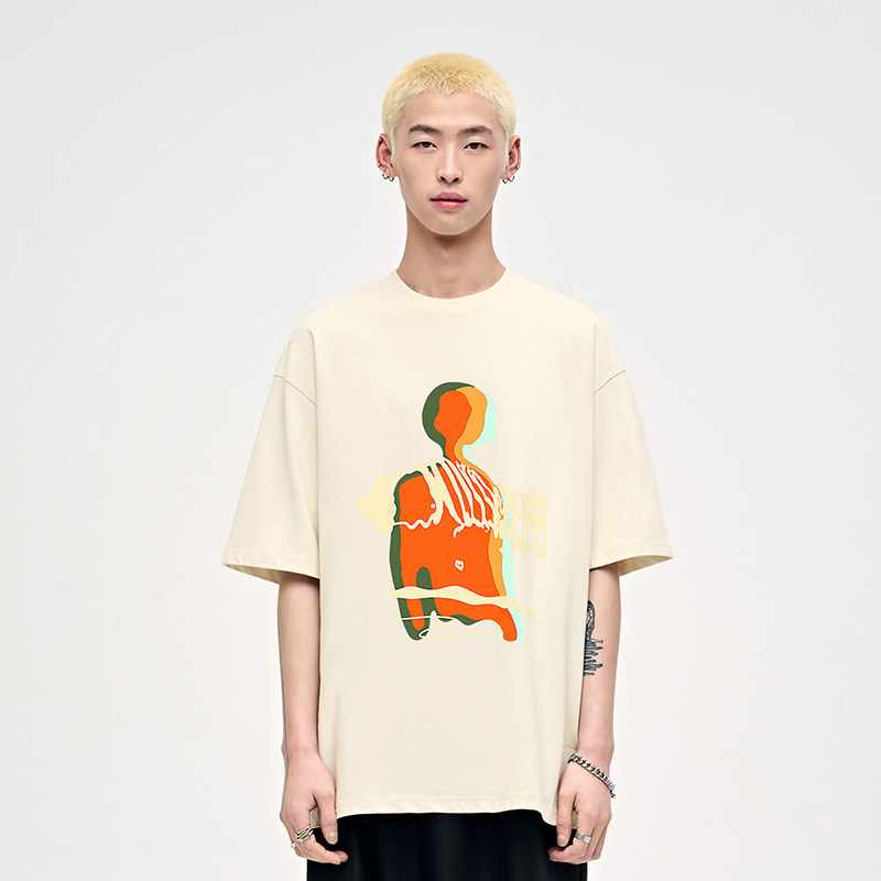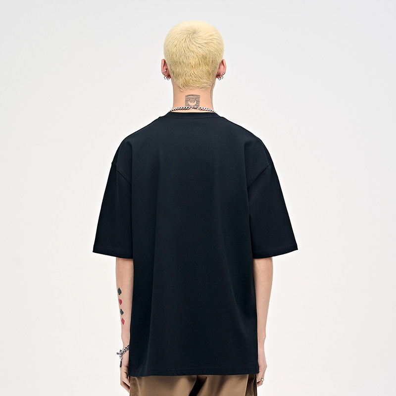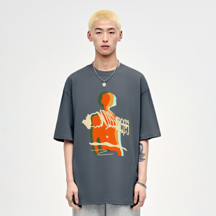潮牌情侣男生半袖 纯棉衣服高街美式 体恤 t恤男夏季 山小川重磅短袖
