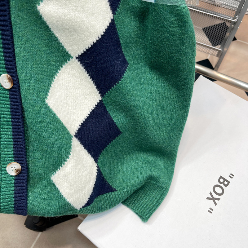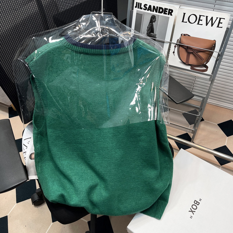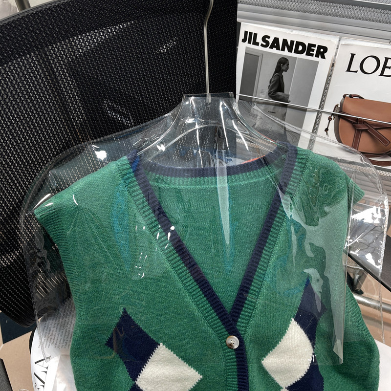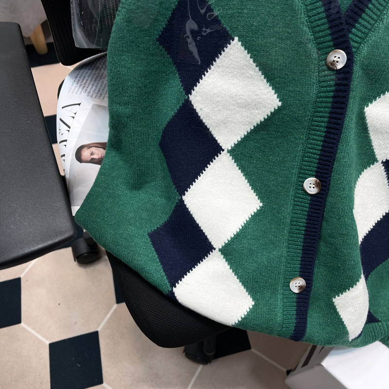 高级感菱格v领宽松针织衫 胡子叔大码 新款 马甲背心外套春季 潮 女装