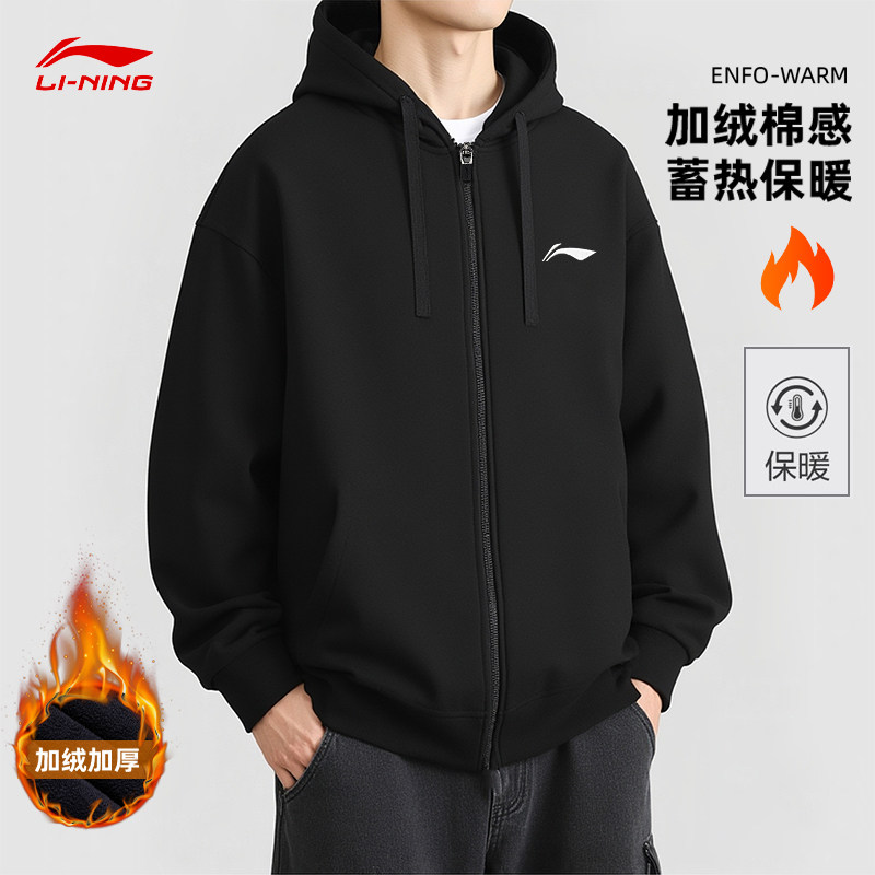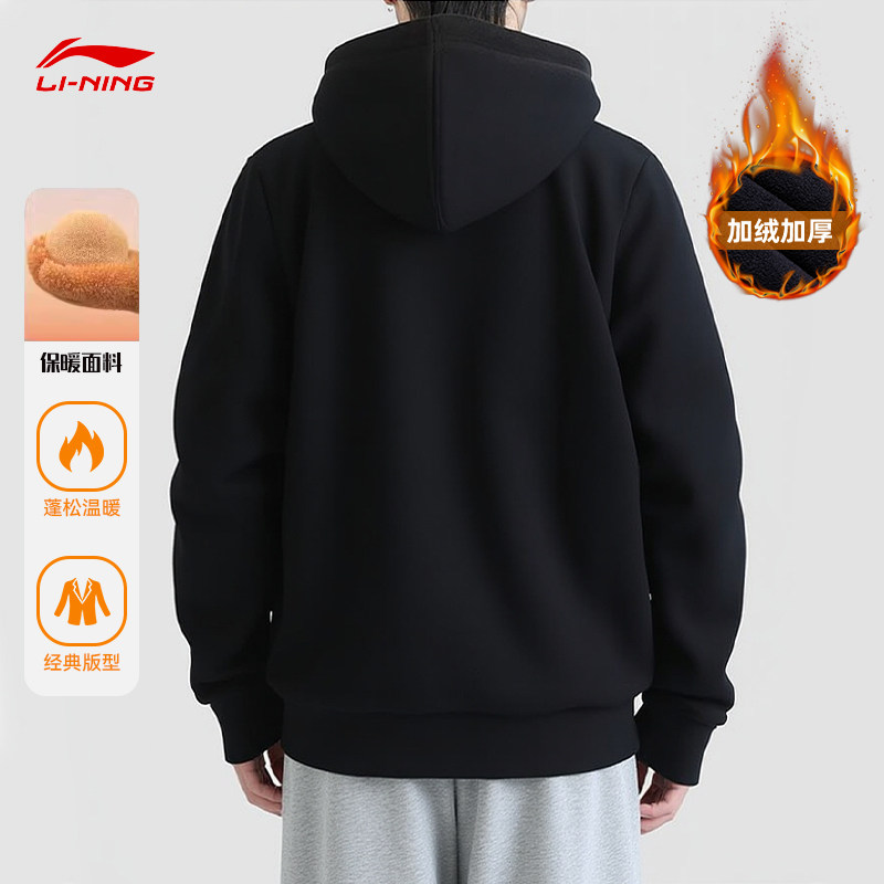 加绒跑步训练服 连帽运动上衣大码 李宁卫衣男外套2025春秋新款 开衫