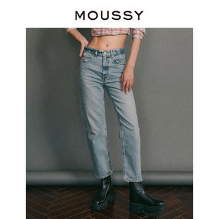 裤 休闲直筒毛边磨损高腰牛仔裤 王 MOUSSY 女 明星同款
