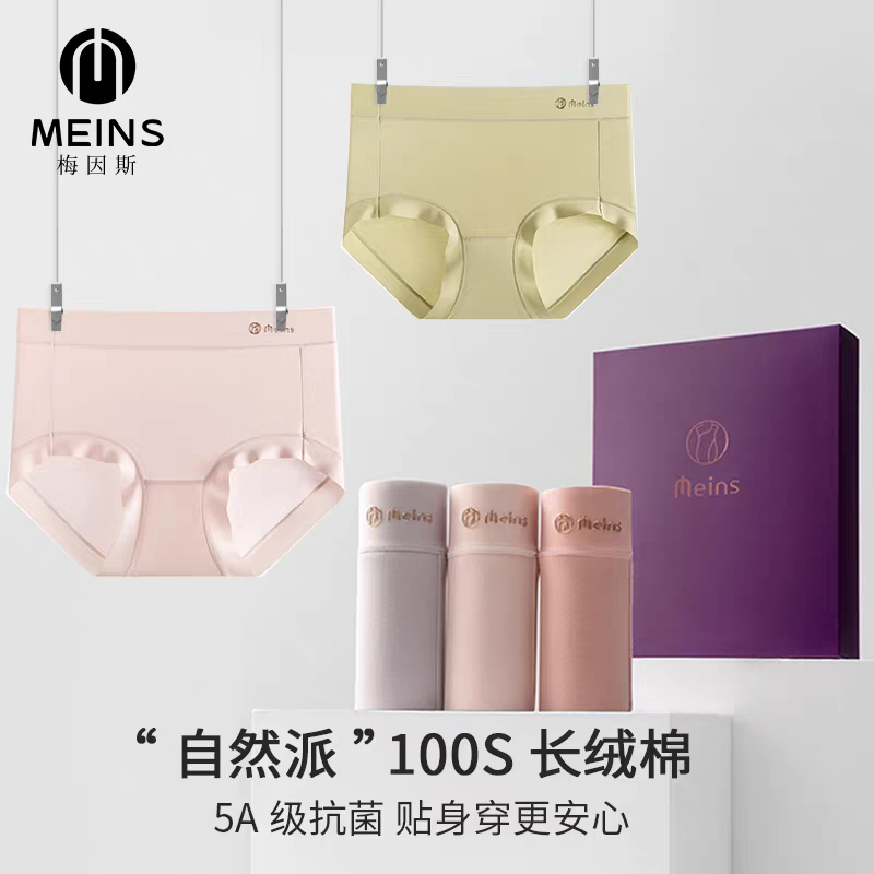 梅因斯MEINS女云感系列舒芙蕾100S长绒棉中腰内裤 N22NF759冬内裤