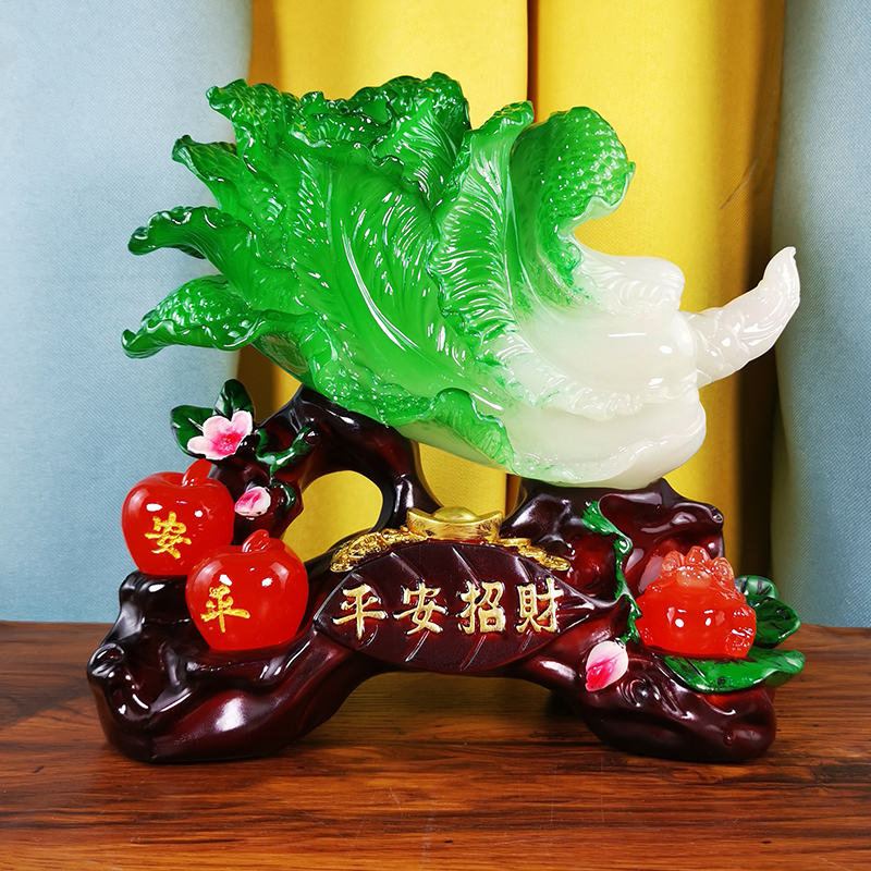 大号招财玉白菜摆件百财聚来家居客厅装 饰品玄关酒柜店铺开业礼品