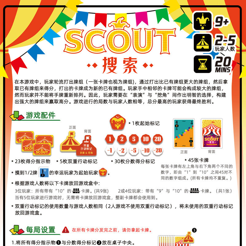 搜索桌游卡牌一百游正版 5桌面游戏扑克 scout中文休闲聚会马戏团2