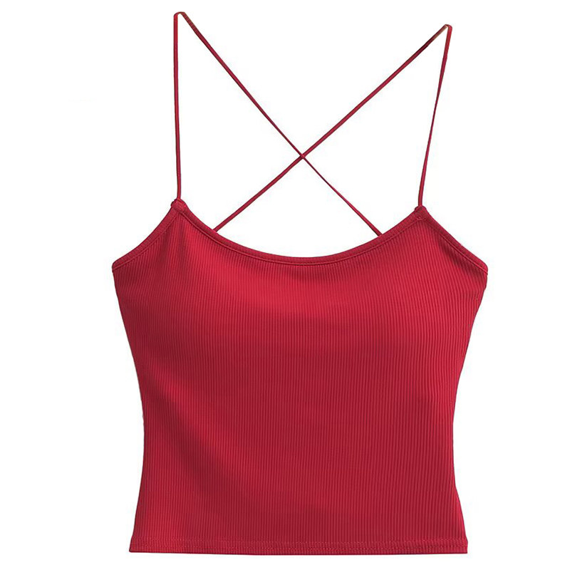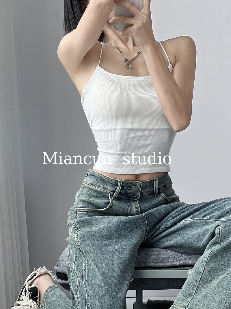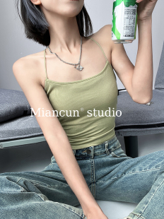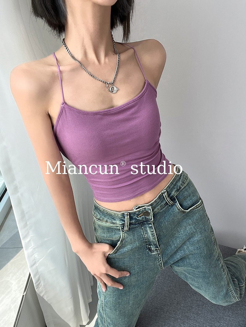 辣妹挂脖小心机短款 设计感绑带露背性感吊带上衣女 带胸垫背心夏季