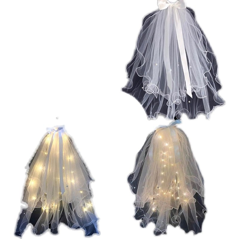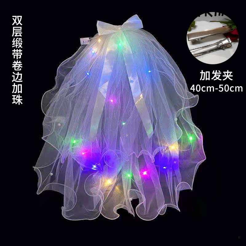 女神节小学幼儿园头纱七夕节礼品李发光头纱儿童超仙带灯闪光头纱