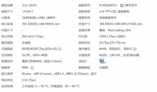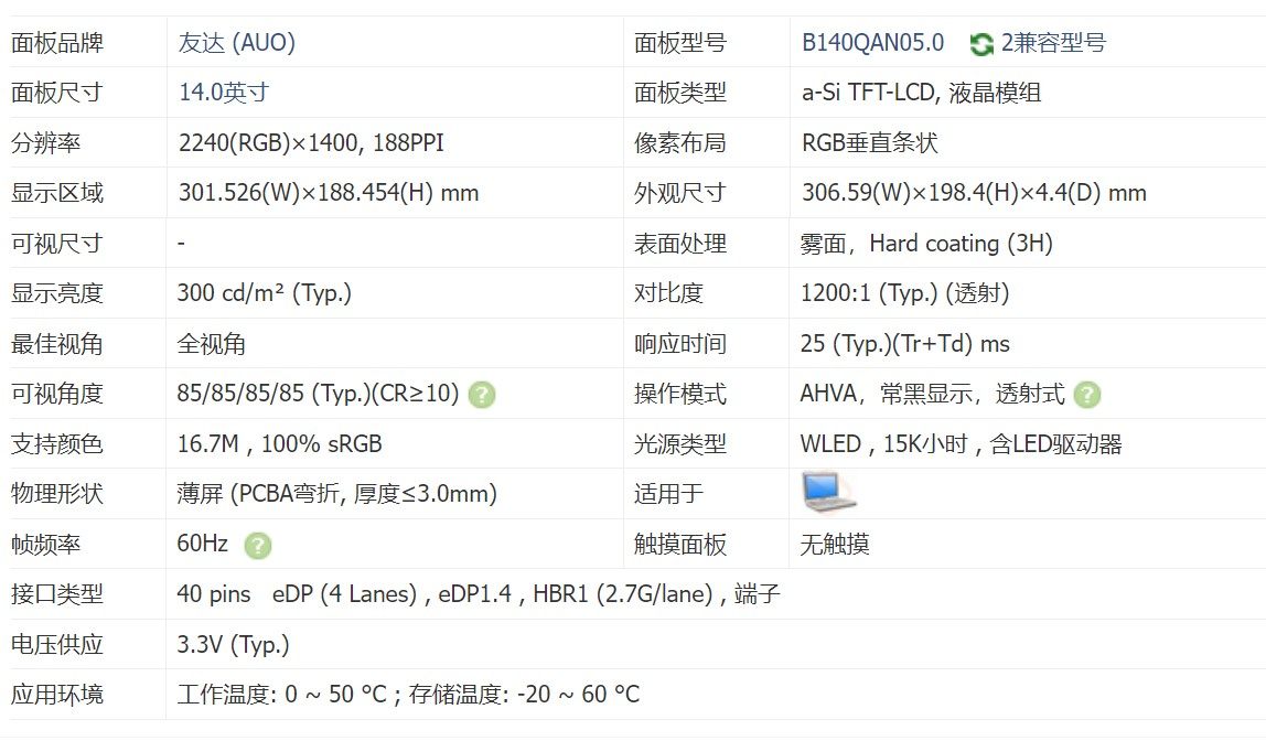 商品标签:B140QAN05.0友达14寸