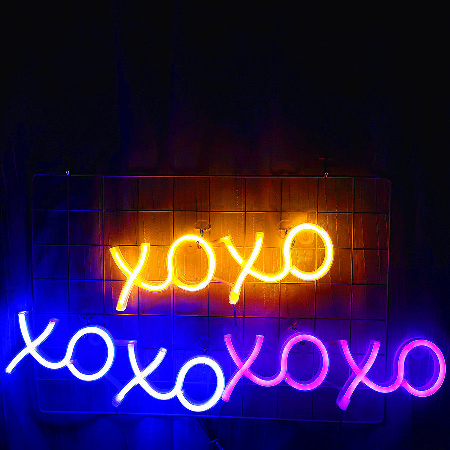 SOKKA新品 饰生日派对挂墙布置霓虹灯XOXO 亚马逊现货LED造型寝室装