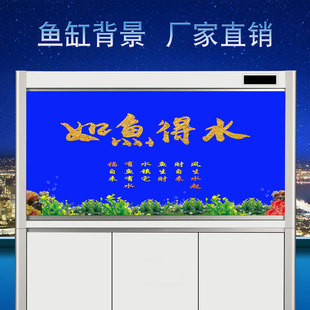 鱼缸背景贴纸八方来财如鱼得水3D高清定制无胶喷水自粘水族箱壁纸