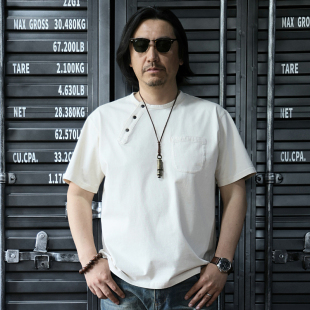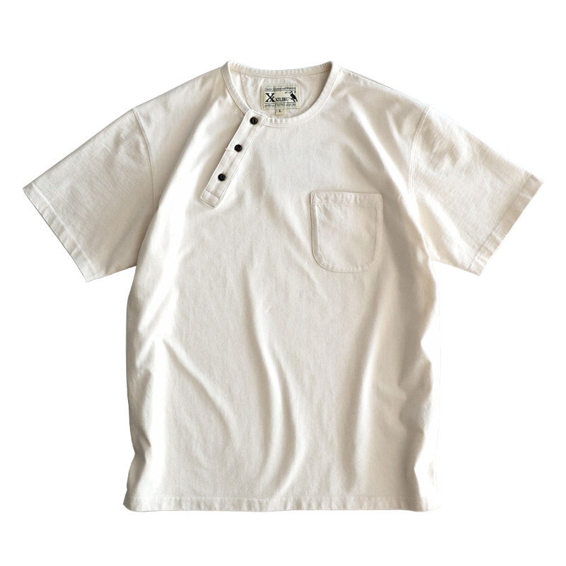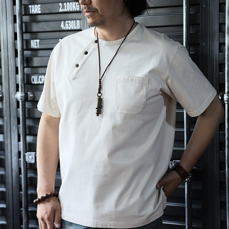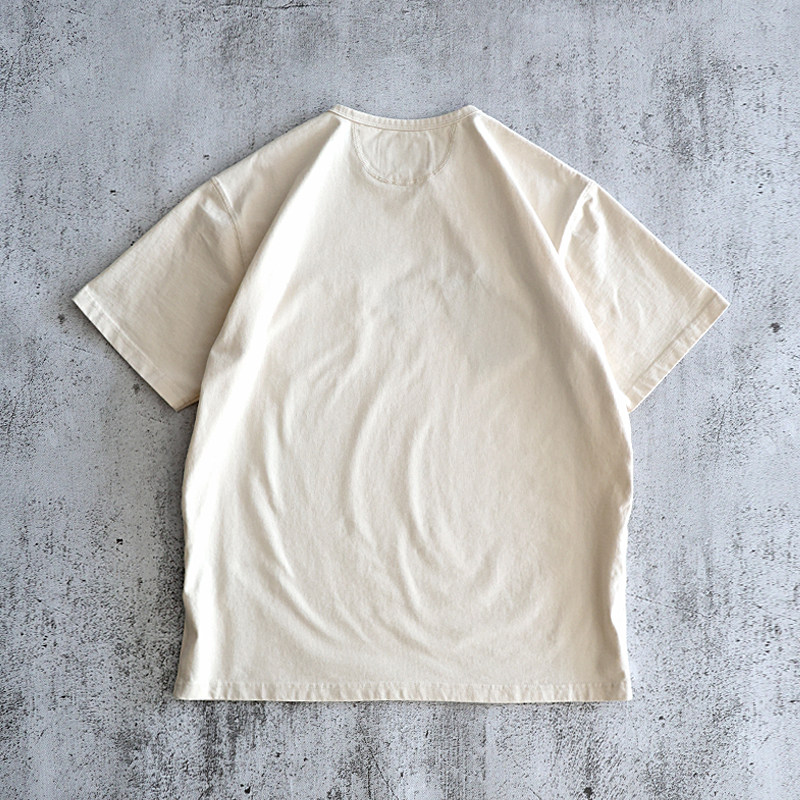 咔叽复古休闲原创新品 T恤衫 非rrl 全棉米白色亨利领半袖 西里布夏季