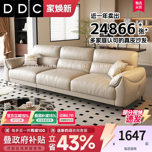 欧派复古棕色皮艺沙发中古风小户型直排三人位云屿真皮法式 沙发