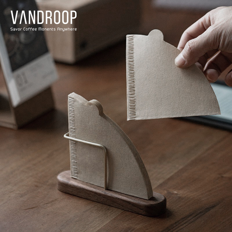 VANDROOP 手冲咖啡滤纸架v60扇形通用黑胡桃实木挂耳滤纸收纳盒