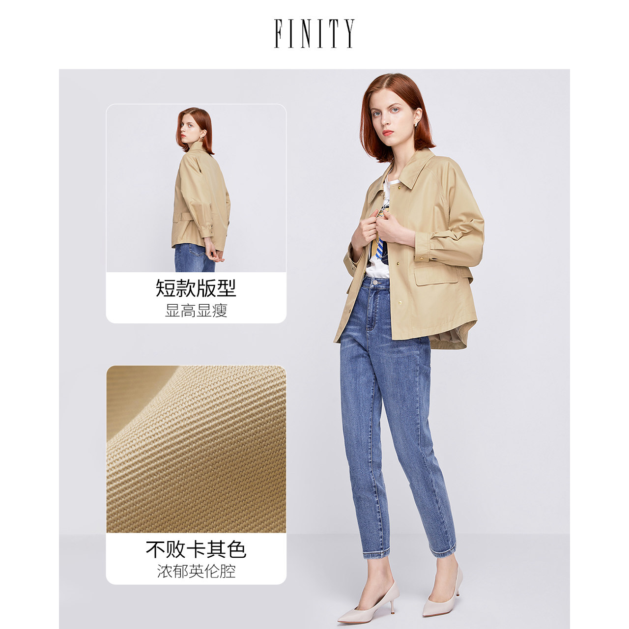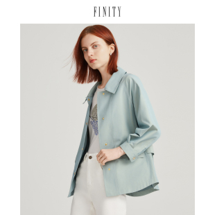 FINITY2023年春季 风衣女 翻领外套气质休闲品牌宽松卡其色短款