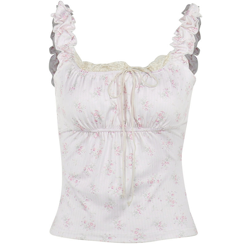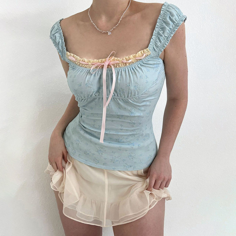 新款 修身 碎花蝴蝶结小吊带 时尚 小背心 个性 2023夏季