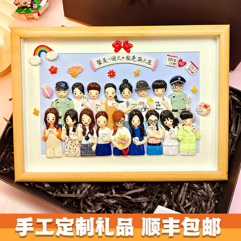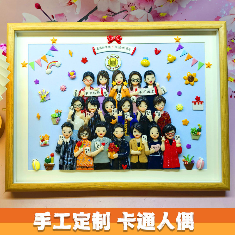 软陶公仔公司团体活动相框卡通人偶多人离职定制礼物手工订作摆件
