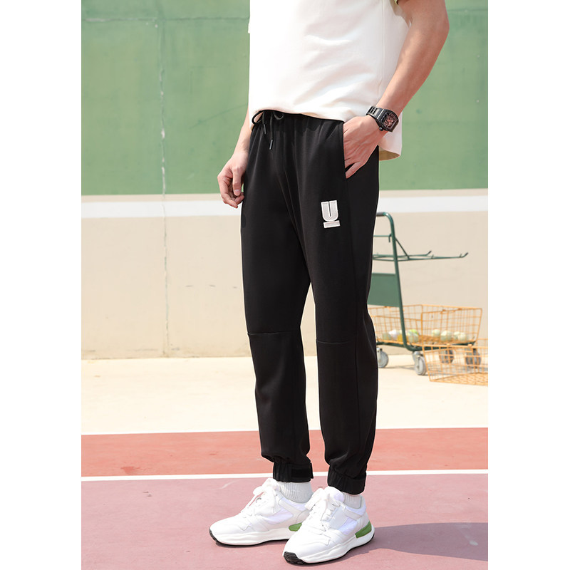 FN自然感觉男青少年夏薄运动裤 64033 宽松天丝黑色松紧腰橡筋长裤