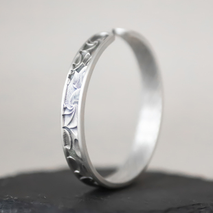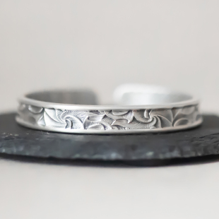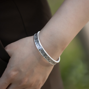 裁云 开口手镯环情人节礼物 纯银足银9999复古做旧螺旋纹褶皱宽版