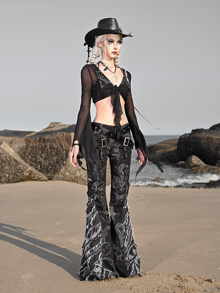 女2025冬紧身喇叭裤 暴雪 烫钻加绒高腰微喇叭牛仔裤 黑 星钻蓝