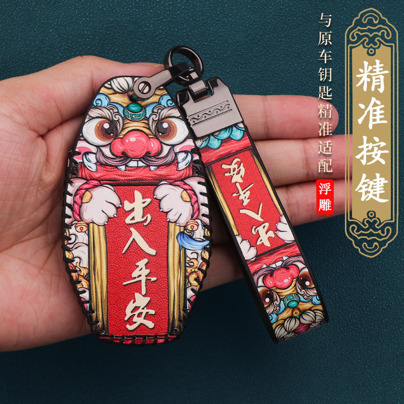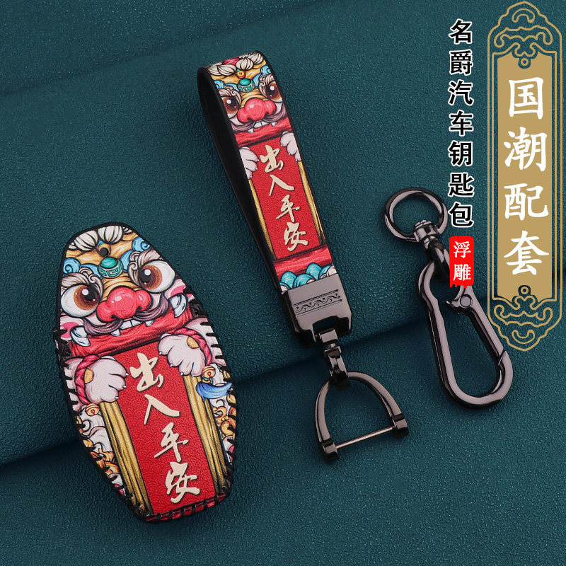 适用23款 名爵7汽车遥控保护皮包扣国潮男女扣 名爵MG7钥匙套包新款