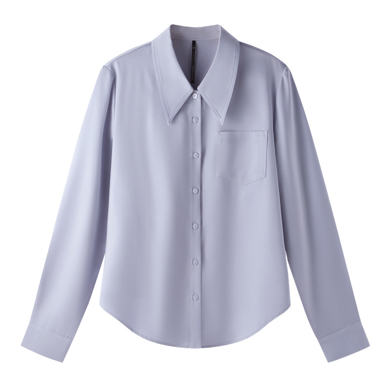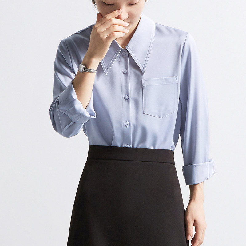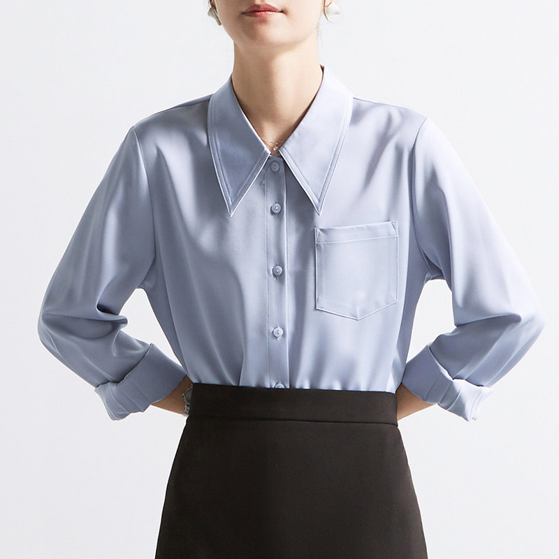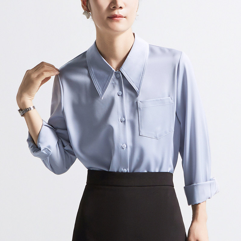 气质通勤OL尖领垂感春秋面试衬衣女 女长袖 CHICBLISS 缎面蓝色衬衫