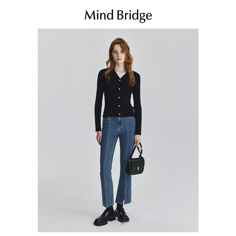 MindBridge2025新款 女士高腰开叉休闲裤 显瘦牛仔裤 微喇裤 秋季