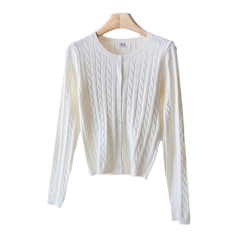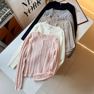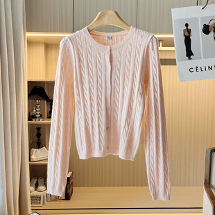 休闲百搭毛衣471612 外套空调衫 女2024纽花圆领针织开衫 长袖
