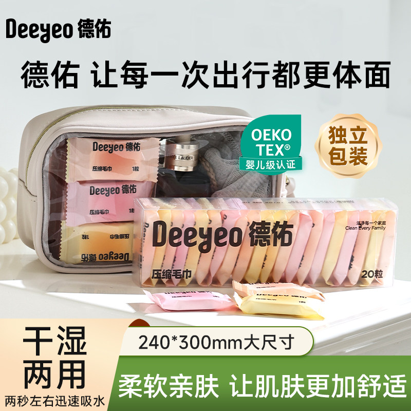 德佑压缩洗脸巾一次性毛巾加大加厚旅行装 独立单颗洁面巾便携
