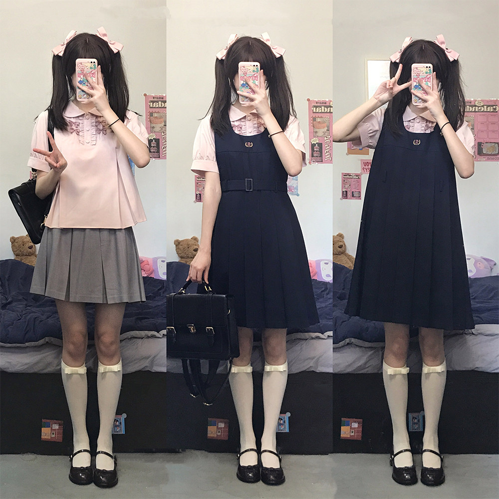 JK衬衫 幼稚园背心裙套装 清中女子部 学院风背带裙 月野HOUSE