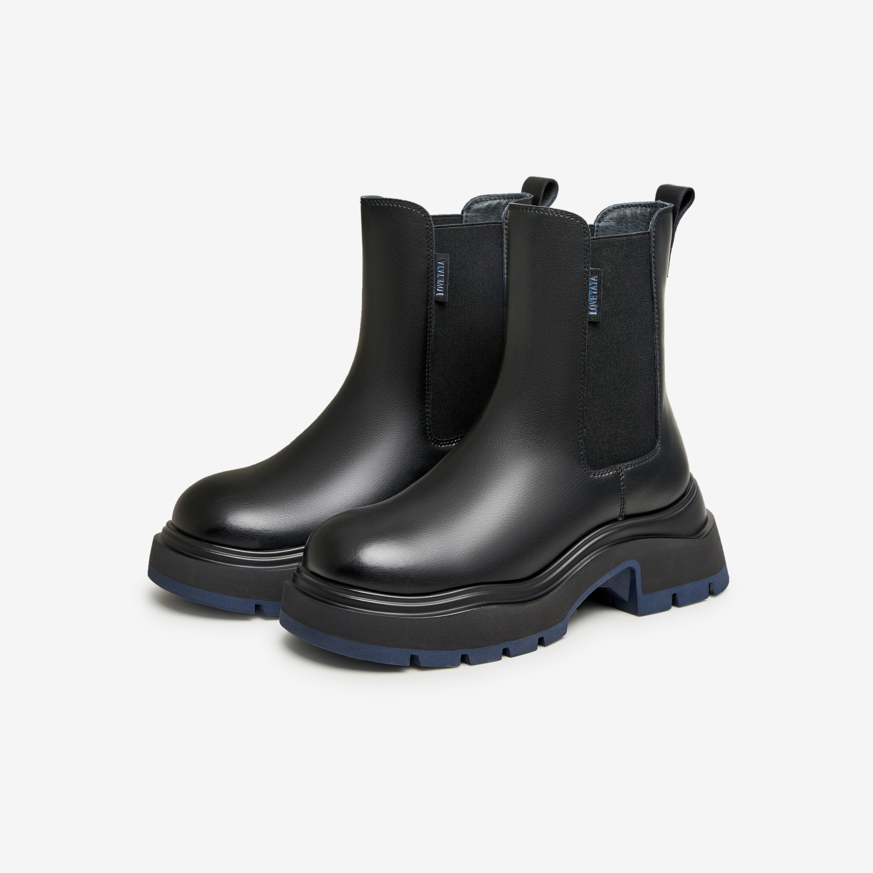 TATA他她靴子2025新款 牛皮烟筒靴加绒厚底切尔西靴短靴7OL44DD5